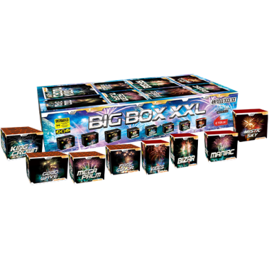 Big Box XXL (5412)Alleen het zwaarste telt! De naam zegt alles: XXL. Een kolossaal buurtpakket vol zware cakes en fonteinen.Prijs: